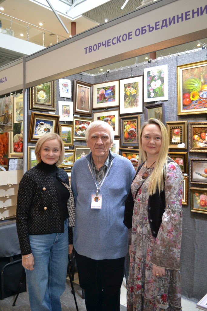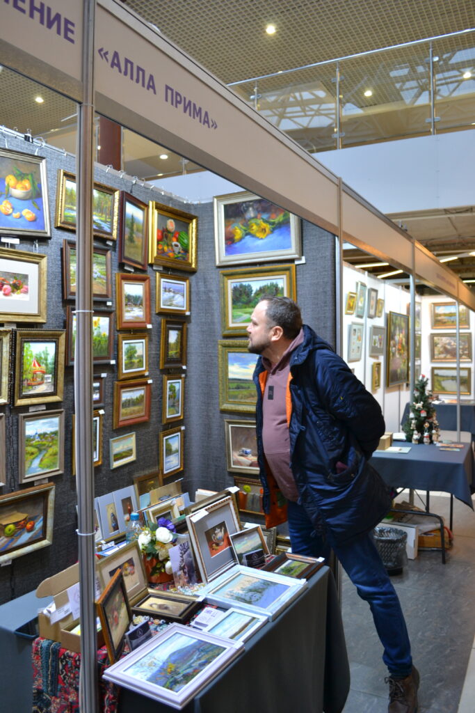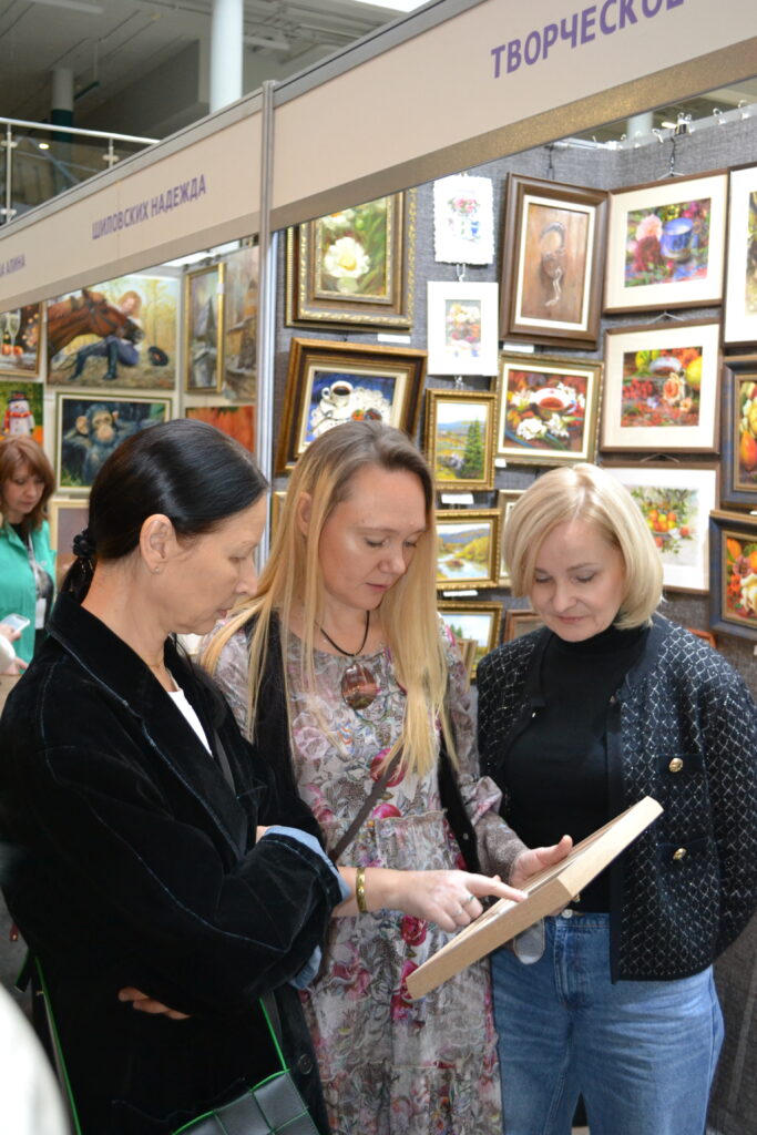 Что особенно важно — мы всегда участвуем в выставке-продаже, потому что живопись лучше всего смотреть вживую. Нет ничего более захватывающего, чем увидеть яркие мазки, тонкие детали и живые краски прямо перед глазами, почувствовать их текстуру и энергию. Именно поэтому мы привезли на стенд работы восьми талантливых художников, каждый из которых вложил в свои картины частичку своей души. Это было настоящее визуальное путешествие — от ярких, насыщенных полотен до тонких, задумчивых работ, которые заставляют остановиться и задуматься.