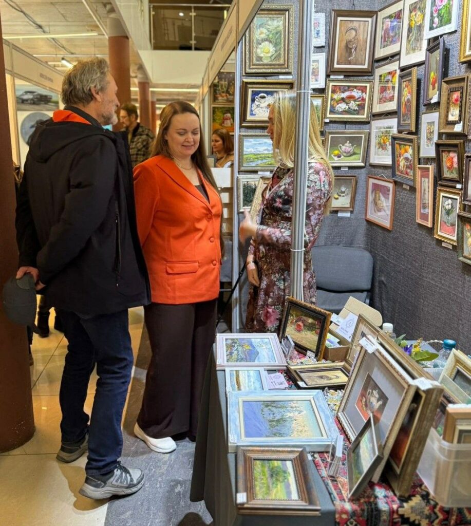 Атмосфера на выставке — это что-то невероятное. В воздухе витает смесь творчества, вдохновения и легкого волнения. В залах слышен шум разговоров, смех, иногда тихий шепот, когда кто-то рассматривает работу поближе. Везде ощущается энергия художников, их страсть к своему делу, желание поделиться своим видением мира. Мы чувствовали, как каждый день наполняется новыми встречами, интересными диалогами и яркими впечатлениями. И, конечно, мы не могли не заметить, как много посетителей приходят именно за живым искусством, за возможностью увидеть картины в их настоящем виде, а не только на фотографиях или в интернете.