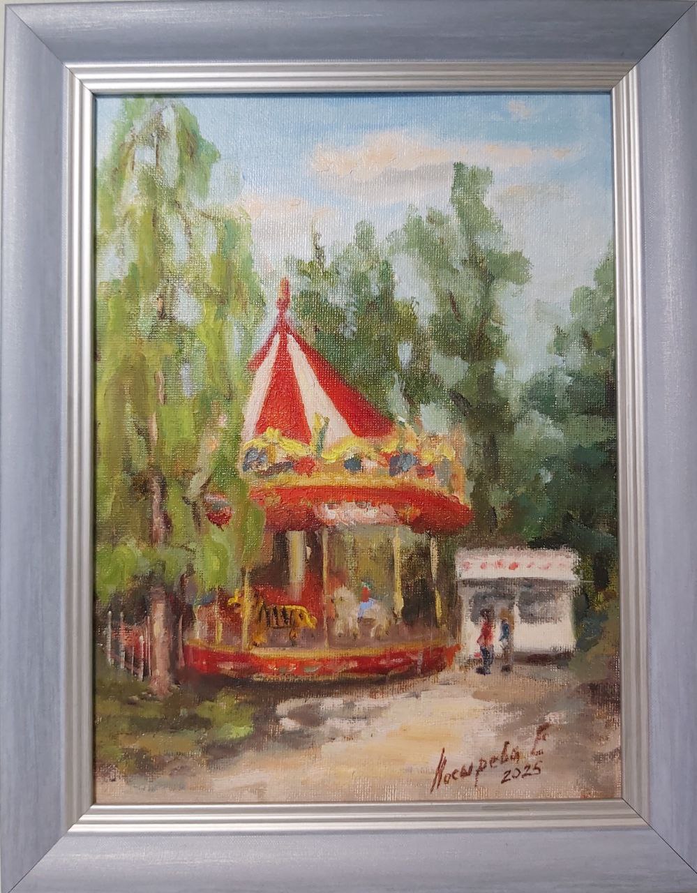 Картина маслом «Веселая карусель» ждет своего покупателя.