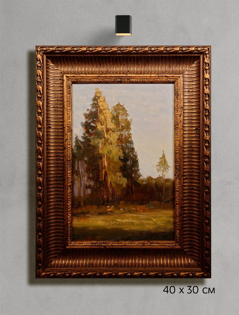 На картине изображён осенний лес с высокими деревьями, залитыми мягким светом. Цветовая палитра насыщена золотистыми, зелёными и коричневыми оттенками, что создаёт ощущение тепла и уюта. Художник уделяет внимание деталям: текстура травы, игра света на листьях и спокойная атмосфера передают гармонию природы. Картина выполнена в реалистическом стиле, что позволяет зрителю почувствовать себя частью изображённого пейзажа. Эта работа отражает любовь художника к природе и его умение передавать её красоту через искусство. Картина станет прекрасным украшением интерьера, добавляя в него нотку спокойствия и эстетики.