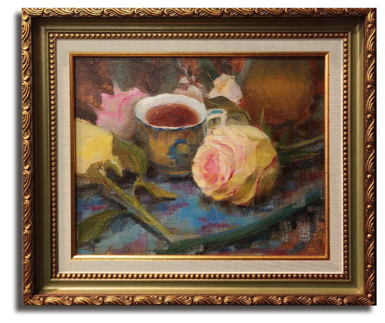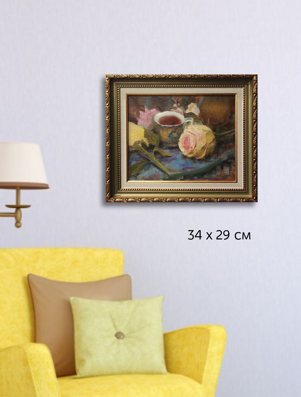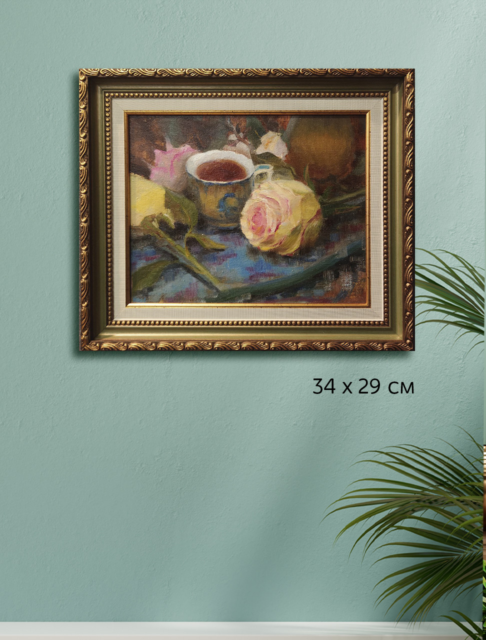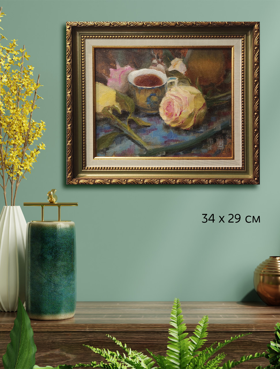 Прекрасный натюрморт, написанный маслом на холсте, оформлен в элегантную рамку. Эта оригинальная картина создана вручную, без использования печати – 100% ручная работа!